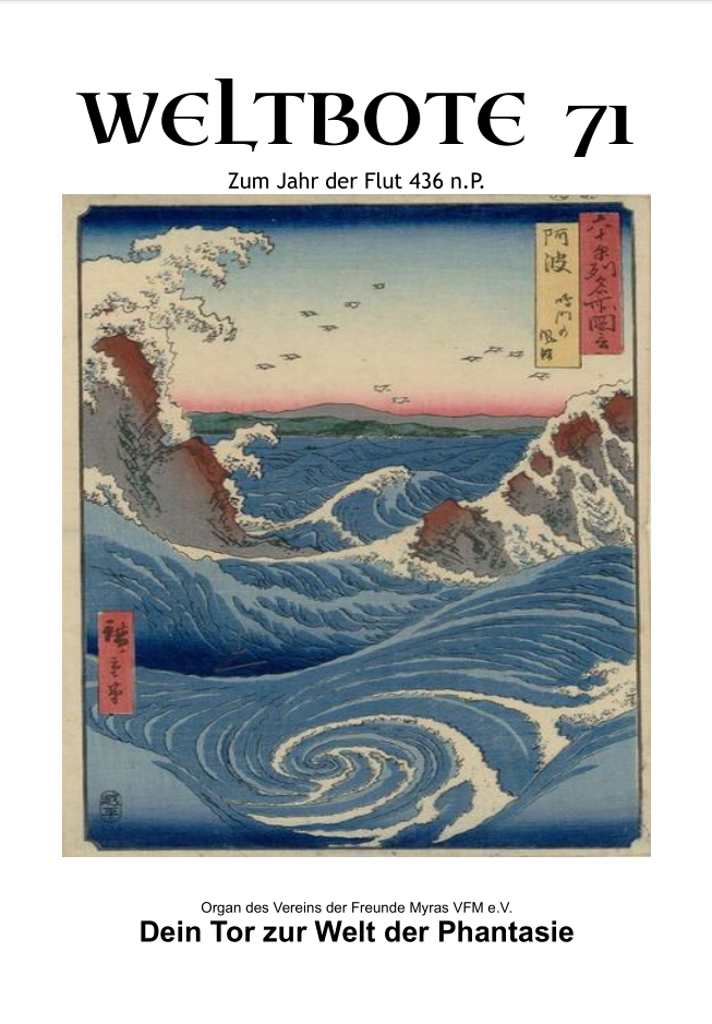 - Am 6. Tags des Katzenmonds Kislew im Jahr der Flut war der Lichtmond der Welt Myra näher und als Vollmond viel größer als in Dekaden davor oder danach. Ebbe und Flut wirkten bei dieser Nähe der nächtlichen Katzengöttin Grewia und ihrem Einfluss auf die Weite See viel stärker, und Fluten überschwemmten in der Nacht zum 07.09. nicht nur bei der Strudelsee auf Gwynddor, die sich wieder ihren Weg nach draussen brach, manche Küste.