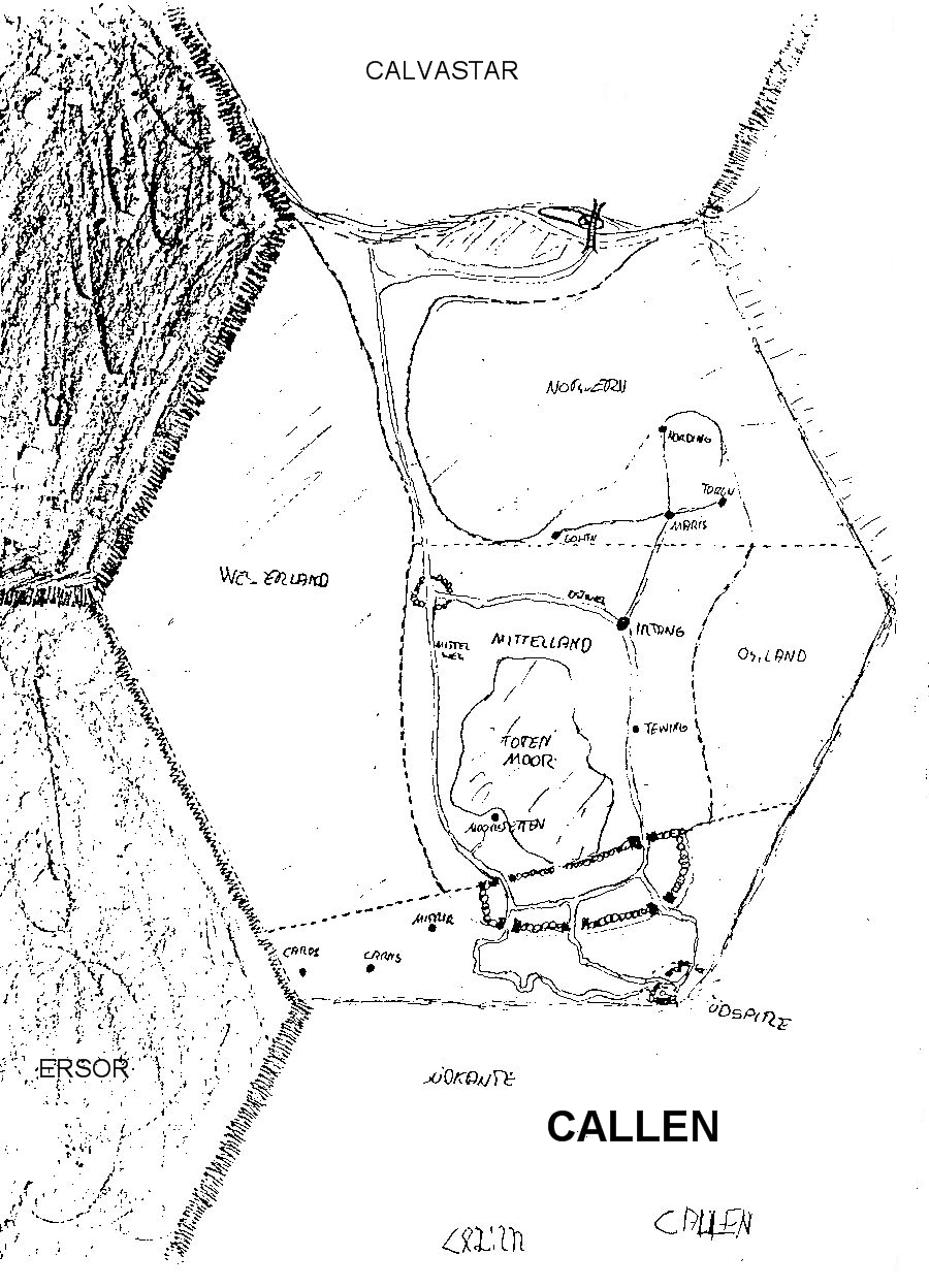 Callen grenzt an das Hochland von Calvastar und das Gebirge von Ersor, sowie natürlich, wie jede Provinz Silurs, an den Vulkan Bel-Arad.