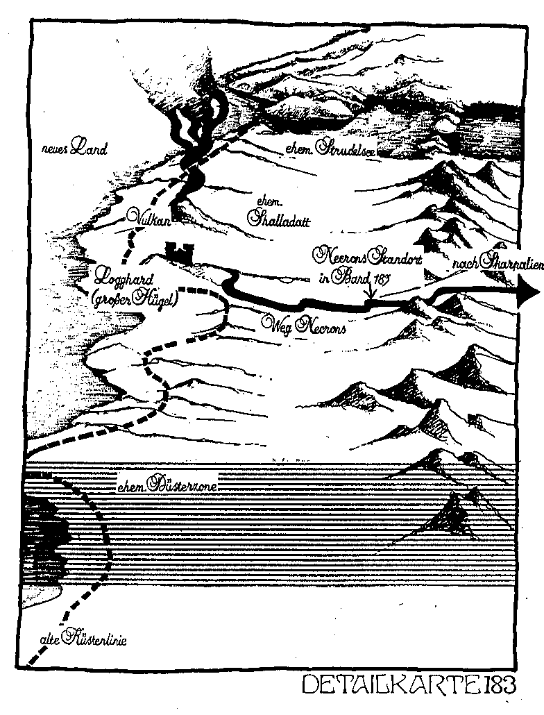Die Gestalt Gwynddors zu Beginn des Dunklen Zeitalters. - Detailkarte 183 von Klaus Schiemann aus #My183 der Mythor-Serie. - Hier: FairUse.