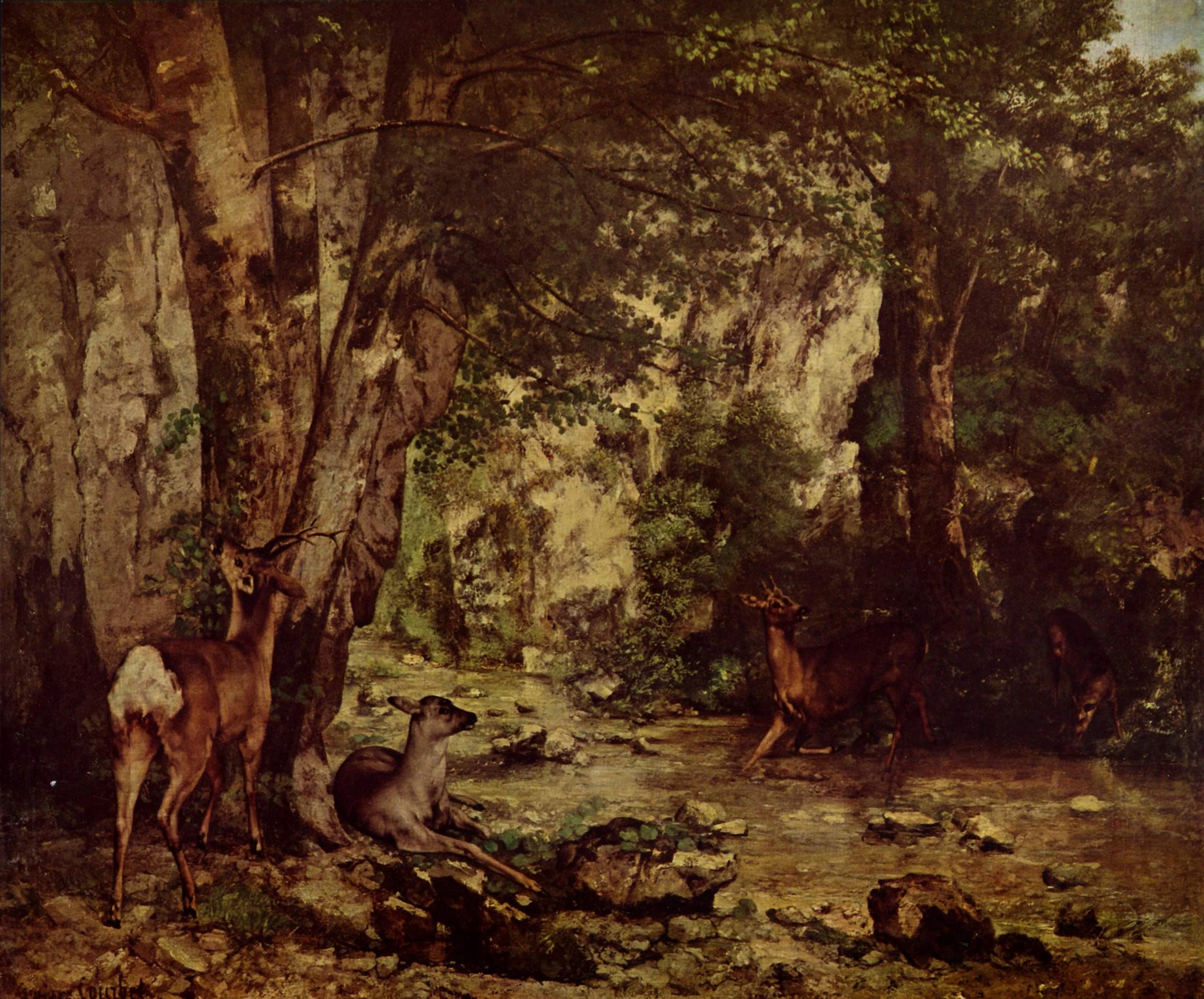Wilde Tiere im Heiligen Hain. Die Hirschkuh ist das Heilige Tier der Göttermutter Dena.