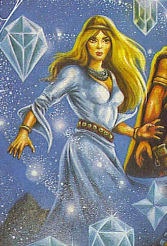Opfer und Dienerin des Dämons Xanada, Gefährtin des Kometensohns Mythor und des Meisterdiebs Arruf (des späteren Shallad Luxon), dem sie in ihrer Liebe fast schon hörig war. Enttäuschte Liebe wandelte sich am Ende in Hass, die nach unbändiger Rache verlangte - ein Verlangen, das der Dämon Achar nur zu gerne zu erfüllen bereit war. Am Ende ihrer Geschichte dient sie so, wie zu Anfang, einem Dämon.