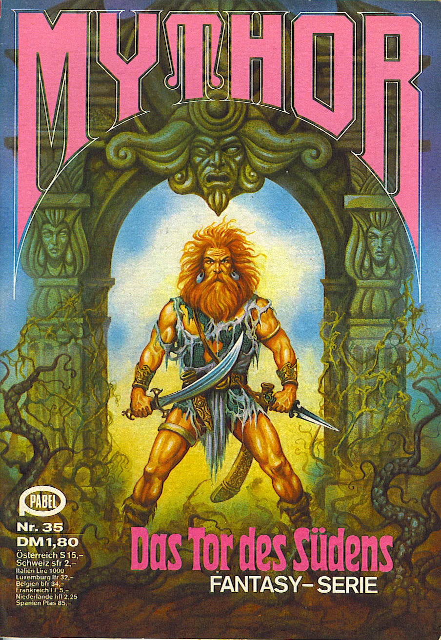35. Roman der Mythor-Serie, Verfasser Kurt Luif (Pseudonym: Neal Davenport), Original Pabel-Moewig Dezember 1980, neu veröffentlicht 2000 als Teil einer Weltbild-Hardcoverausgabe.