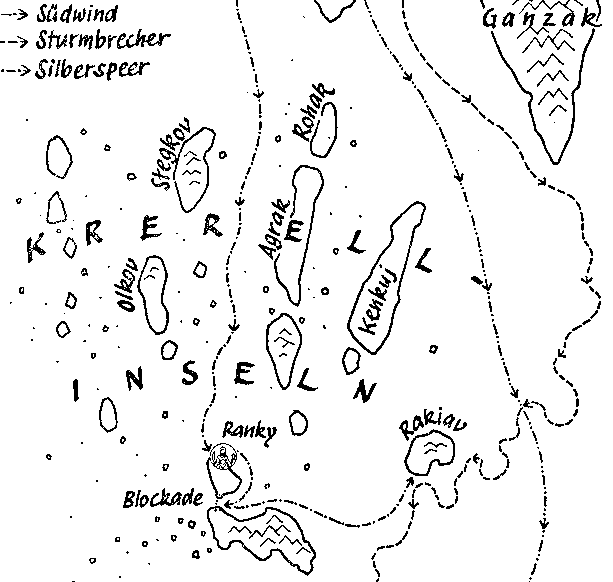 Krerell-Inseln. Karte: H.Pesch für My92/S.59