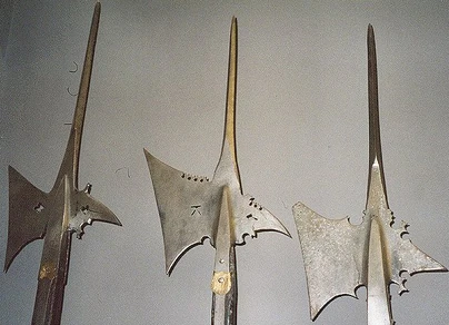 Rüstungsbrechende Waffen mit Spitze, z.B. Rabenschnabel, spitze Seite der Hellebarde
